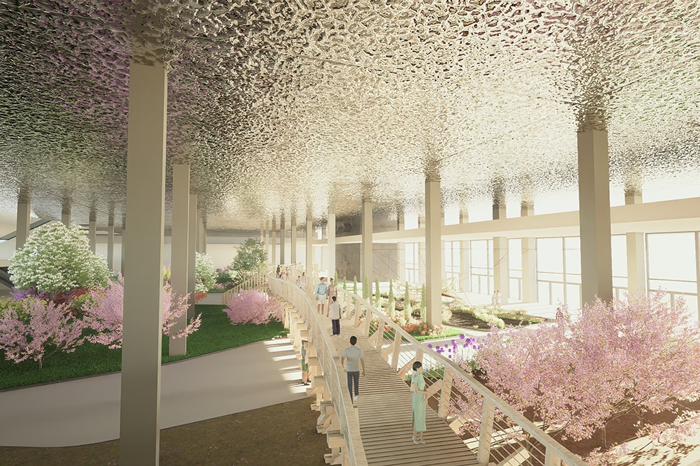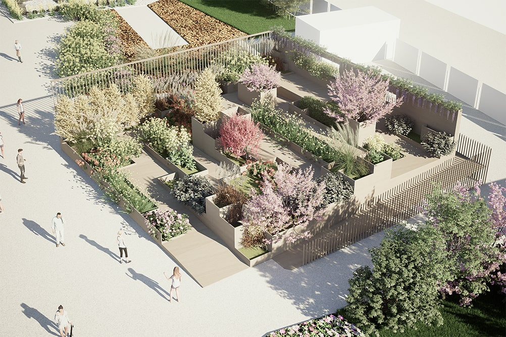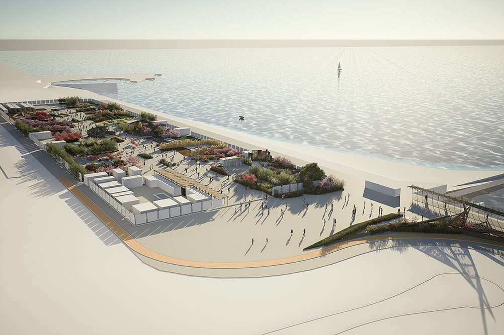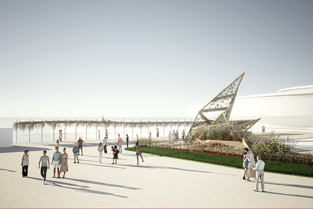 Un “mirador fiorito” affacciato sul mare in Piazzale Kennedy e un ponte pedonale lungo più di cento metri nel padiglione Jean Nouvel permetteranno al visitatore di alzarsi rispetto al livello del suolo e di godere di una vista d’insieme della manifestazione e di tutti gli allestimenti.