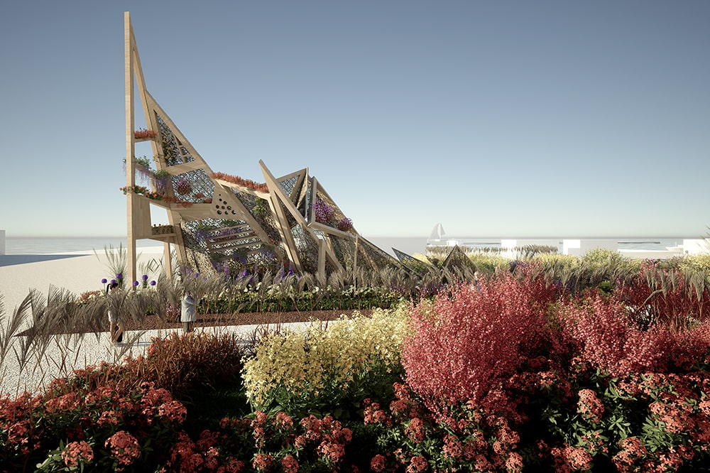 Il progetto di Euroflora 2025, firmato dall’architetto Matteo Fraschini per Urges-Gruppo Valagussa, si svilupperà tra arte e natura: quattro installazioni denominate “Origami Verdi” orienteranno e contraddistingueranno il percorso lungo oltre quattro chilometri. Ispirandosi alla suggestiva pratica orientale di piegatura della carta, le strutture eleveranno il suolo fino a farlo diventare superficie verticale verde e ricca di colori in dialogo con l’orizzonte. Alcune superano anche i dieci metri di altezza, reinterpretando liberamente la figura della vela, del fiore, per la precisione la strelitzia, e della rete da pesca per rappresentare il forte legame del territorio ligure con il suo mare aperto sul mondo.