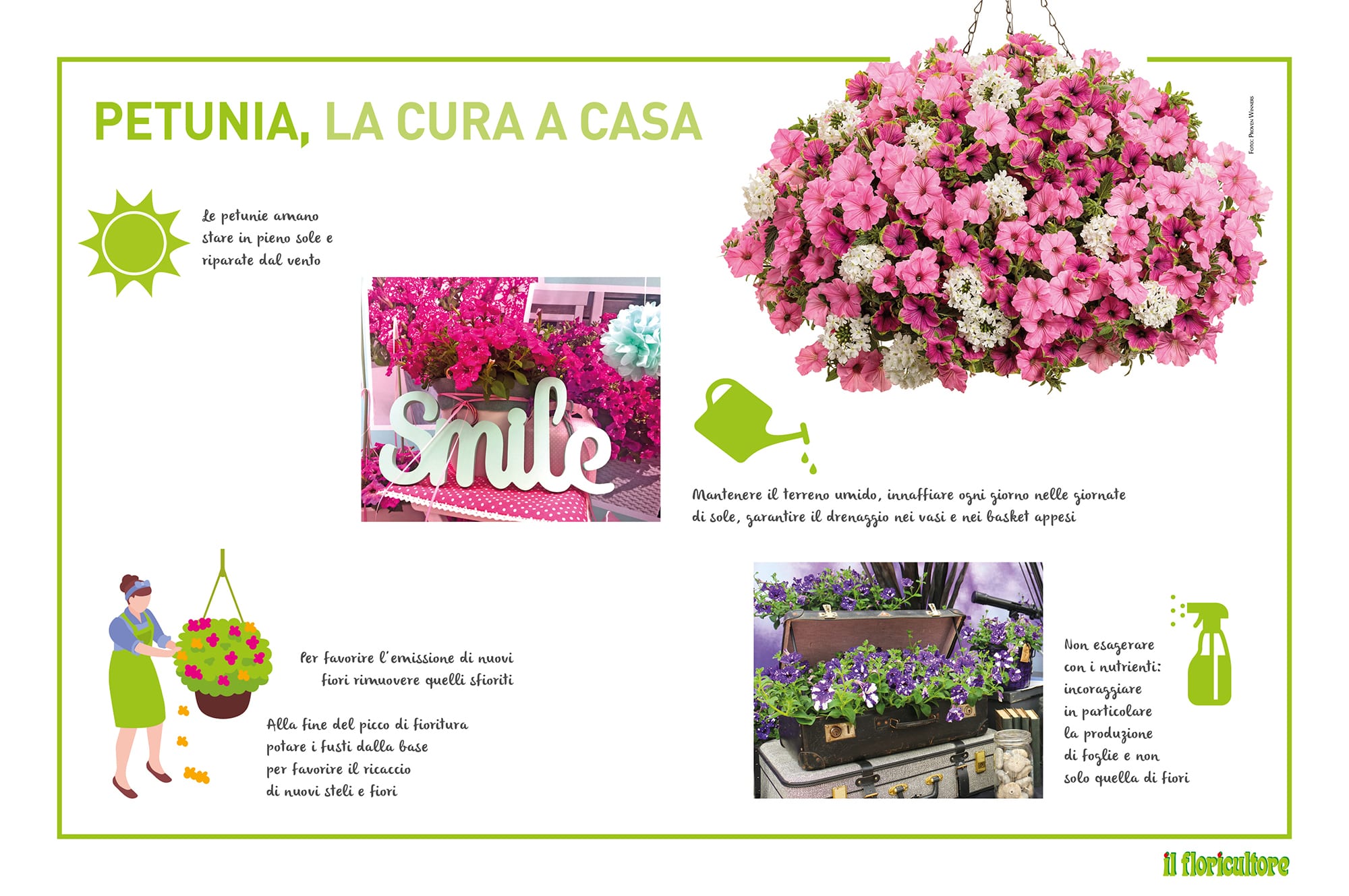 Con i suoi fiori a forma di tromba, la Petunia annuncia in ogni direzione che la bella stagione è davvero arrivata. Questa classica pianta da balcone ha molte possibilità d’uso: in basket appesi come pianta ricadente, in giardino per ornare aiuole o creare bordure fiorite e perfino come tappezzante di grandi superfici. Grazie alla sua crescita esuberante, infatti, la Petunia ha un forte impatto paesaggistico.